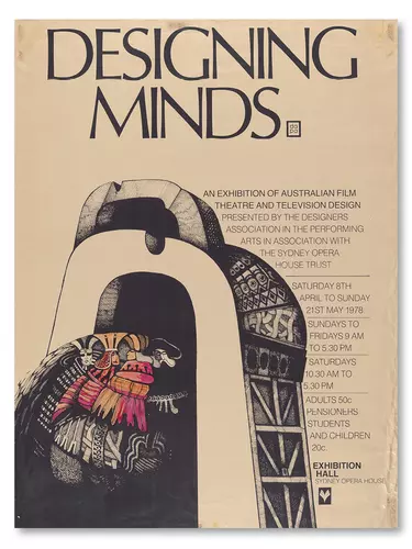 The Designing Minds exhibition poster takes us into the surreal world of film, television and theatre design. The poster for this event, held in the Sydney Opera House Exhibition Hall, entices us through a mysterious archway and into the mind of the designer.