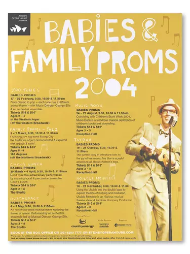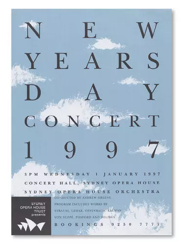 Bold contrasts and the scattering of multicolour type over the sails is used to represent the diversity of the Folkloric Festival. Running through the 70s and 80s, this festival celebrated traditional cultures from across the world on the Sydney Opera House Forecourt.