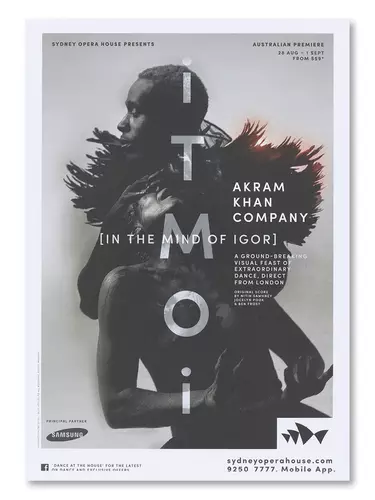 An innovative contemporary dance performance reinterpreted 100 years after the premiere of Igor Stravinsky’s Rite of Spring, poster artwork by Sydney Opera House Creative Studio.